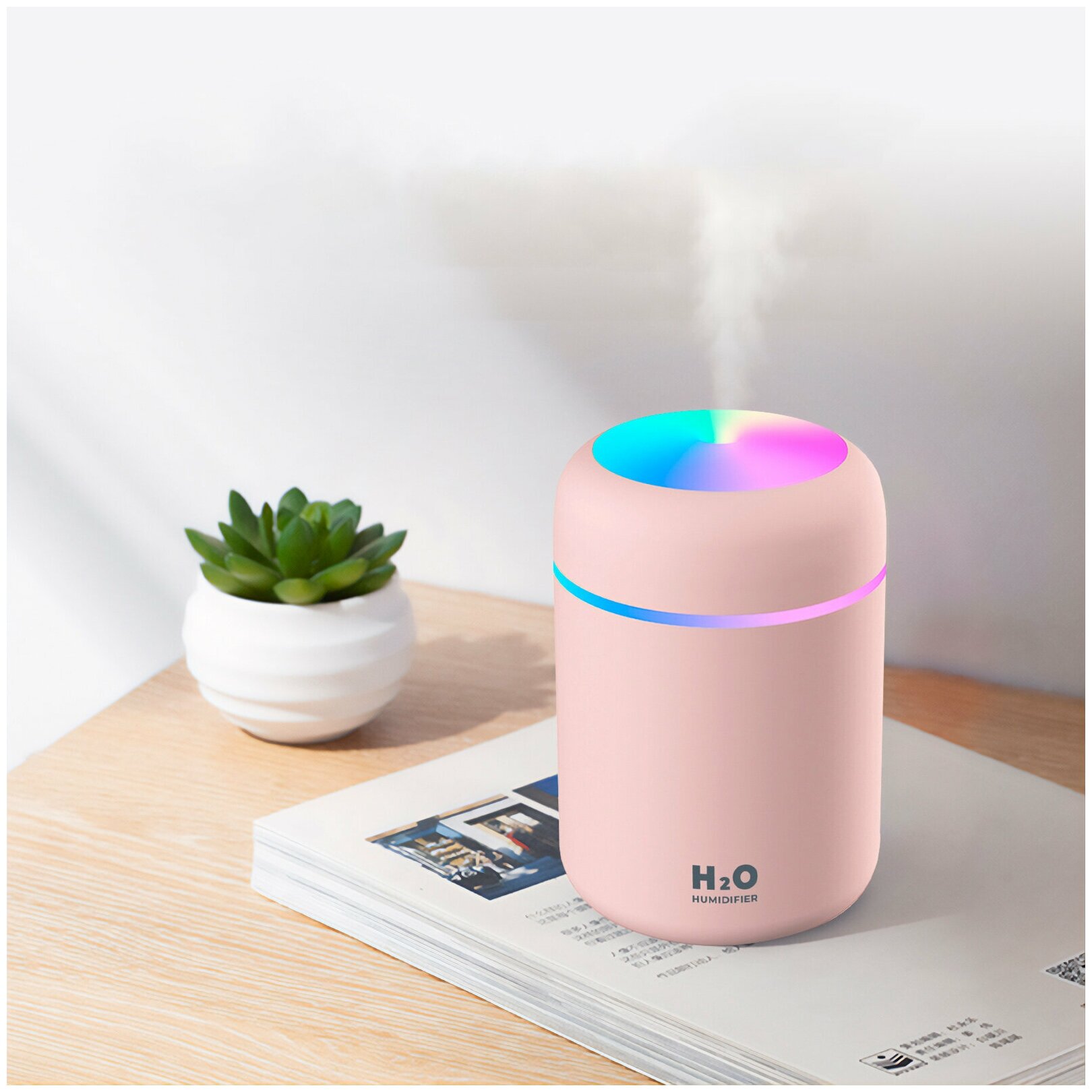Увлажнители воздуха Увлажнитель воздуха Humidifier H2O, портативный с LED подсветкой, 300 мл, розовый