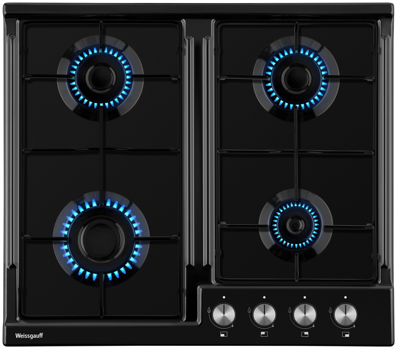 Газовая панель Weissgauff HGG 640 BEBG экспресс-конфорка, 3 года гарантии, автоматический электроподжиг, Рукоятки Hi-Tech