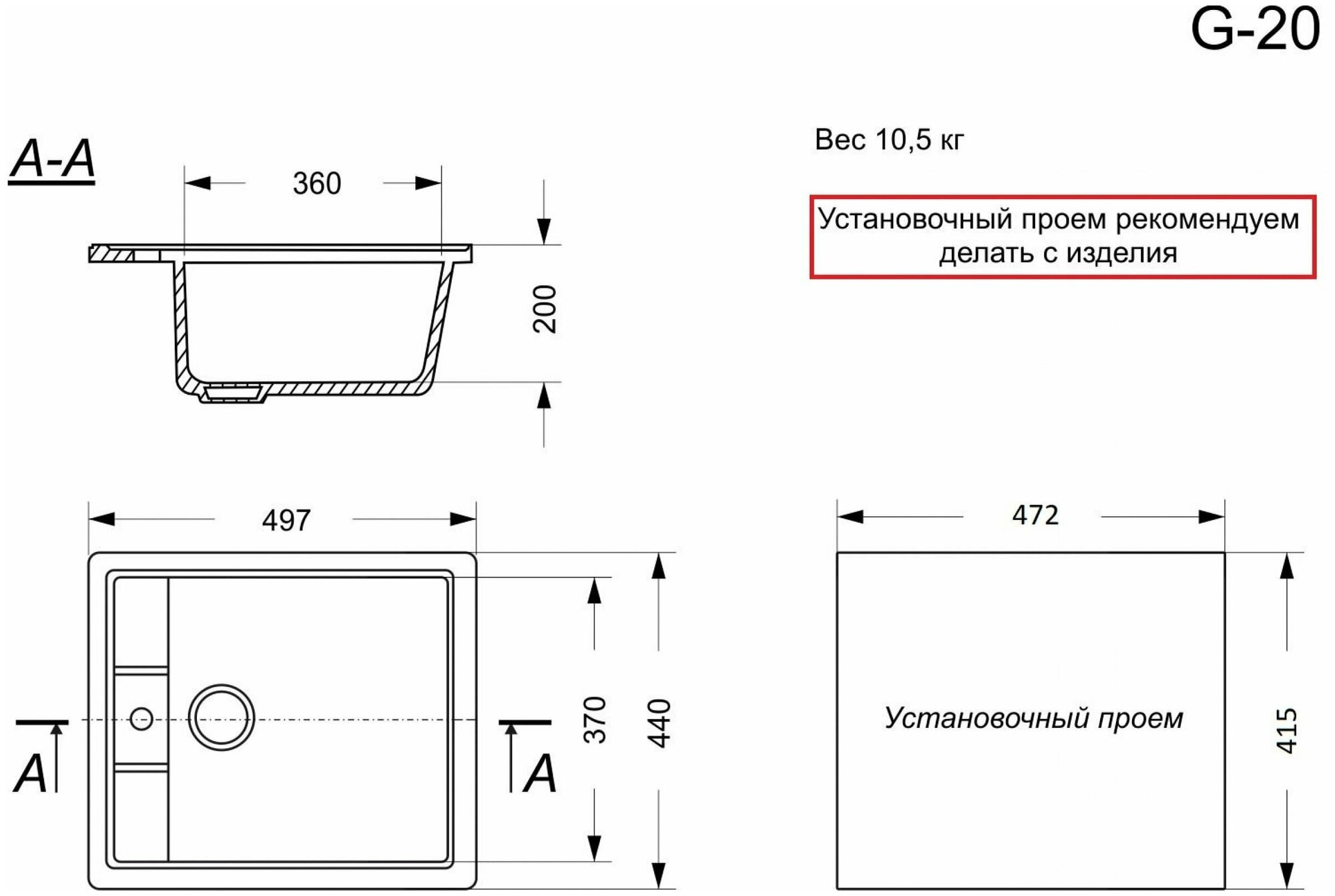 Кухонная мойка GA-21, черный, шт.