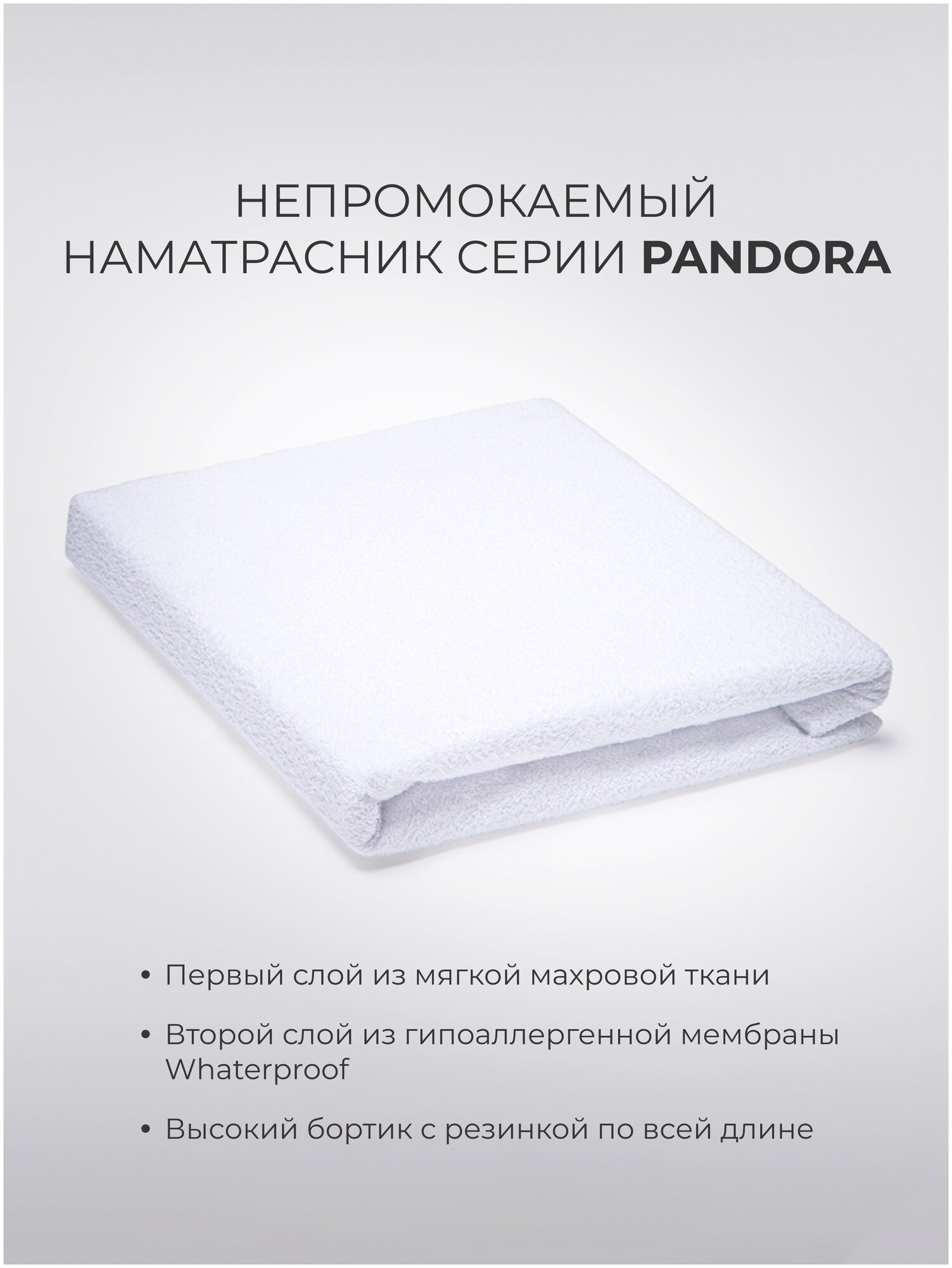 Лучшие цены. Непромокаемый наматрасник серии PANDORA торговой марки SONNO. Размер 160х200 см, высота бортика 30 см. Предназначен для создания дополнительного комфорта и защиты от пятен и загрязнений основного матраса. Наматрасник создан из технологичного полотна двух слоев. Верхний слой из мягкой махровой ткани придаёт мягкость и не даёт постельному белью соскальзывать с поверхности. Внутренний слой это полиуретановая мембрана Whaterproof, изготовлена из водонепроницаемого гипоаллергенного полотна. Магазины в вашем городе.