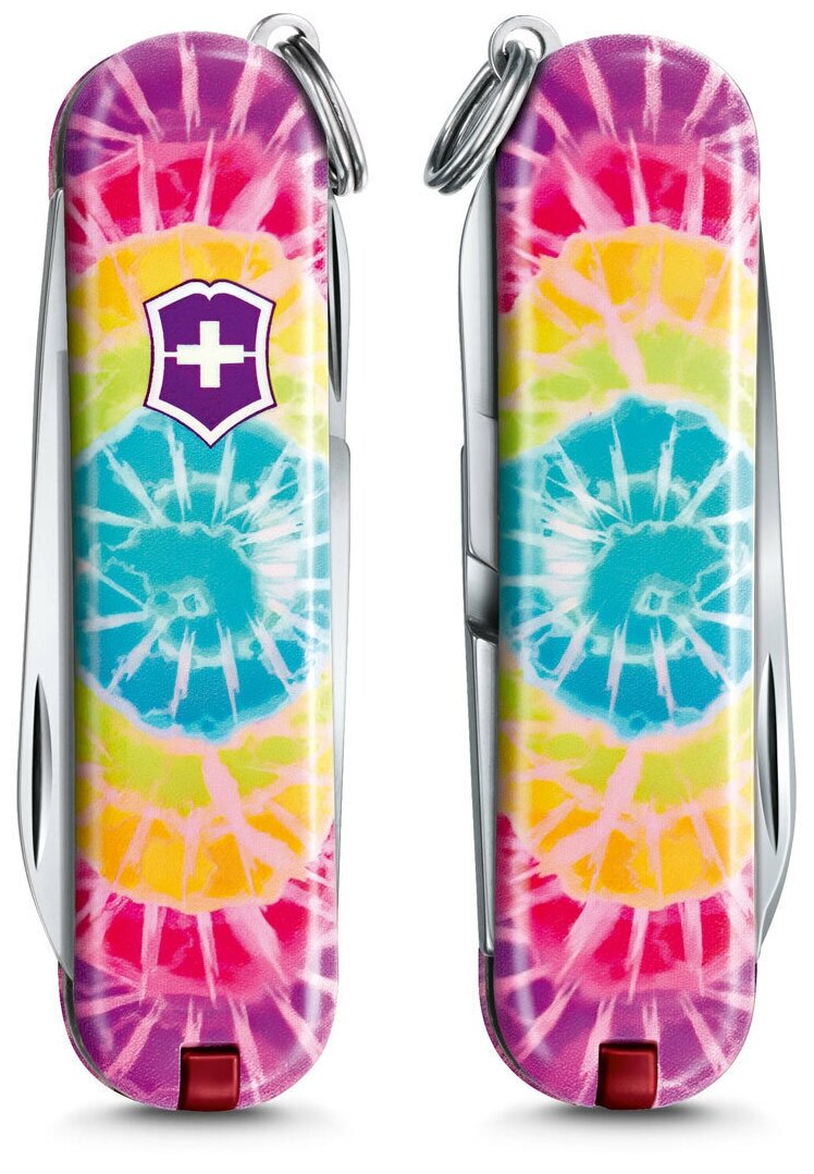 Нож-брелок VICTORINOX Classic 0.6223.L2103 "Tie Dye", 58 мм, 7 функций, лезвие и инструменты из нержавеющей стали, рукоять из пластика Cellidor