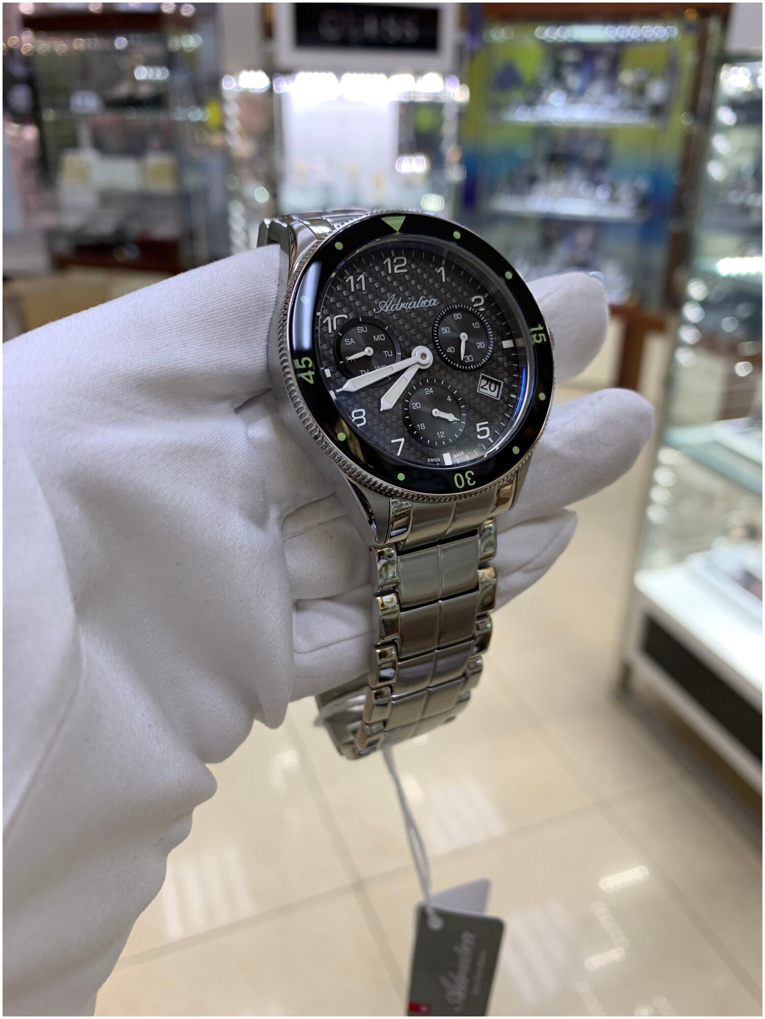 Лучшие цены. Пол: МужскиеМеханизм: КварцевыйКалибр механизма: RONDA Х30Материал корпуса: Нержавеющая стальВодозащита: WR 50 (5 ATM)Материал браслета: Нержавеющая стальЦвет браслета: СтальнойРазмер браслета (H1-H2): 22-22Застежка: БабочкаСтекло: Минеральное антибликовоеФункции: 24-часовой указатель времени, Вращающийся безель, Вынесенная секундная стрелка, Дата, День неделиОсобенности: Люминесцентные стрелки и меткиСтрана: ШвейцарияГарантия: 24 мес. + 24 мес. (на механизм). Магазины в вашем городе.