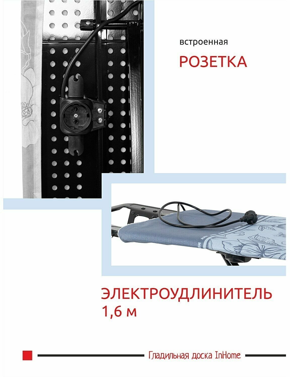 Гладильная доска металлическая с розеткой, полкой и подрукавником InHome IN3M/4