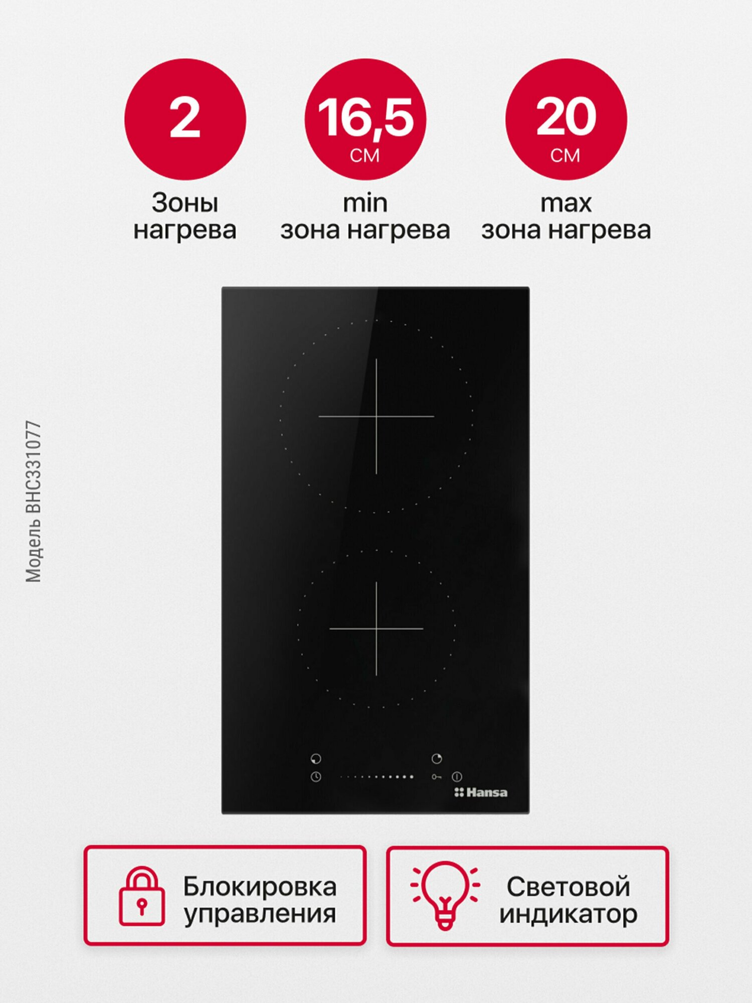 Лучшие цены. Варочная поверхность Hansa BHC331077 превратит готовку в легкий увлекательный процесс. Стеклокерамическая варочная панель с 2 конфорками HiLight прочная и легко очищается. Функция блокировки управления защищает варочную панель от детей или случайного нажатия, а индикатор остаточного тепла показывает, что конфорка еще не остыла. Функция блокировки управления Функция блокировки не позволит вашим детям самостоятельно включить зону нагрева и убережет от ожогов. Магазины в вашем городе.
