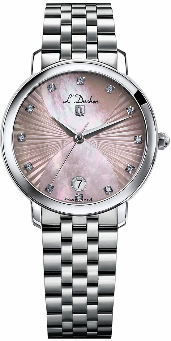 Лучшие цены. Наручные часы L’Duchen Eternity Артикул D 801.10.35. Коллекция: Eternity. Корпус часов выполнен из высококачественной нержавеющей стали 316L. Размер корпуса 32 мм (диаметр, без учета заводной головки). Розовый перламутровый циферблат с фианитами. Дополнительные функции: дата. Швейцарский кварцевый механизм Ronda. Водозащита 5 АТМ (50 метров). Можно мыть руки / часы защищены от сильного проливного дождя. Сапфировое стекло. Браслет из нержавеющей стали. Магазины в вашем городе.