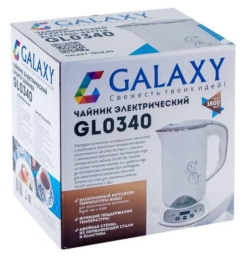 Galaxy Чайник электрический Galaxy GL 0340, металл, 1.5 л, 1800 Вт, регулировка t°, белый 6 222 ₽ Подробнее