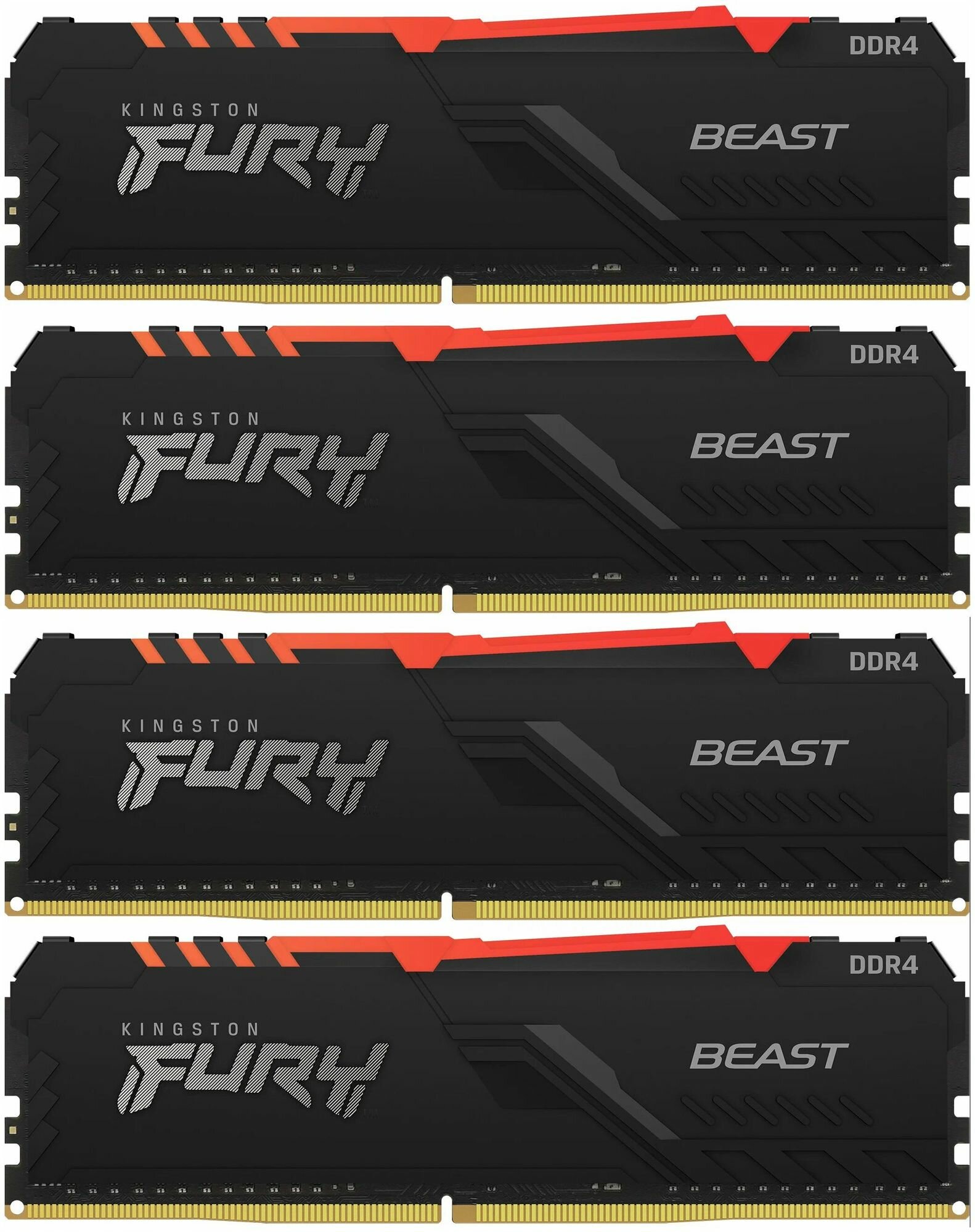 Оперативная память Kingston FURY Beast RGB 128 ГБ (32 ГБ x 4 шт.) DDR4 3200 МГц DIMM CL16 KF432C16BBAK4/128
