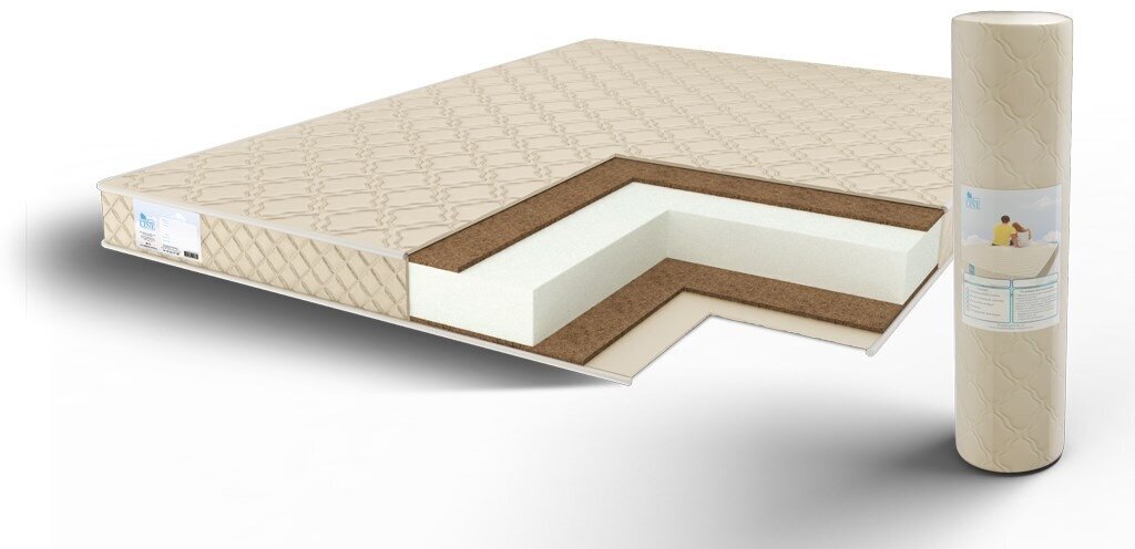Лучшие цены. Беспружинный умеренно-жесткий матрас. br Матрас на основе ППУ (10 см) со слоями кокосовой койры (1 см) с обеих сторон. br br Несъемный чехол: хлопковый жаккард. Стежка: холлкон (100 г). br Нагрузка, кг: до 115. br Высота, см: 12. br br *Поставляется в скрученном виде. Магазины в вашем городе.