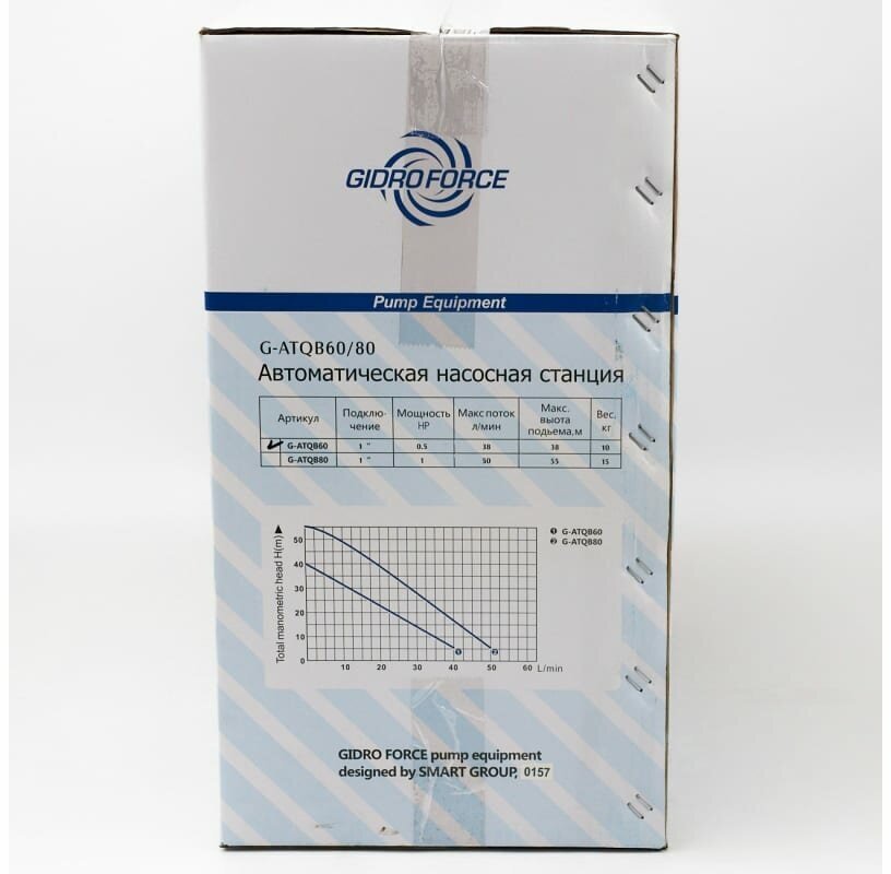 Насосные станции GIDRO FORCE Насосная станция с расш.бак.24л, 38л/мин на 38м, комплектация сальник и воронка, ATQB60
