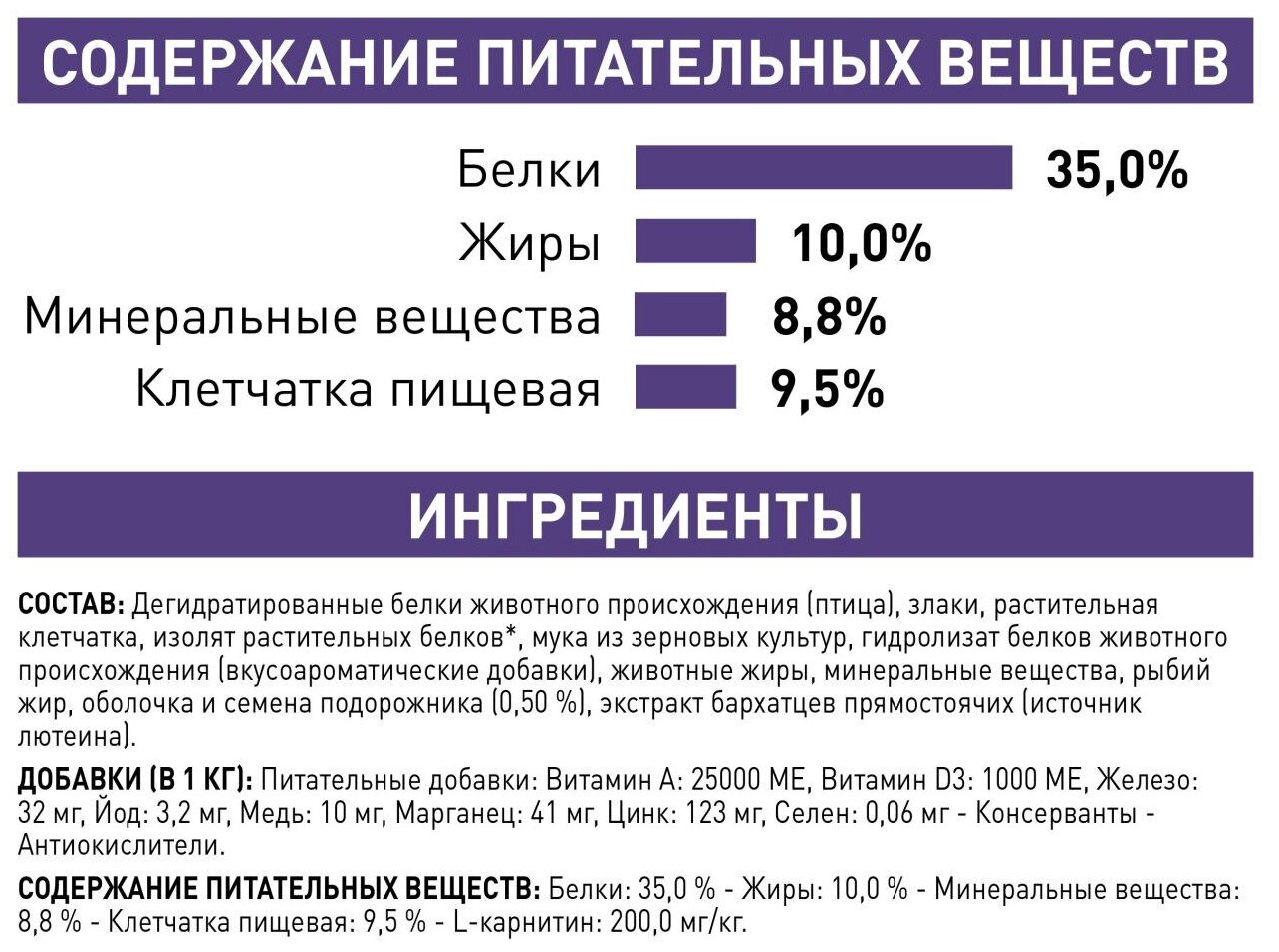 | Ингредиенты | кукуруза, глютен, белок птицы, рис, пшеница |