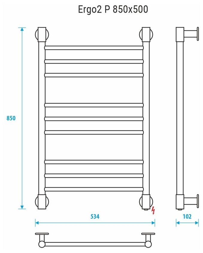 Электрический полотенцесушитель Energy Ergo2 P 850x500 прямой