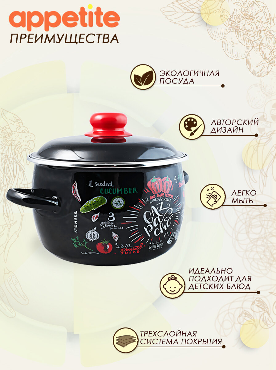 Кастрюля эмалированная с крышкой Gazpacho 3,0л ТМ Appetite