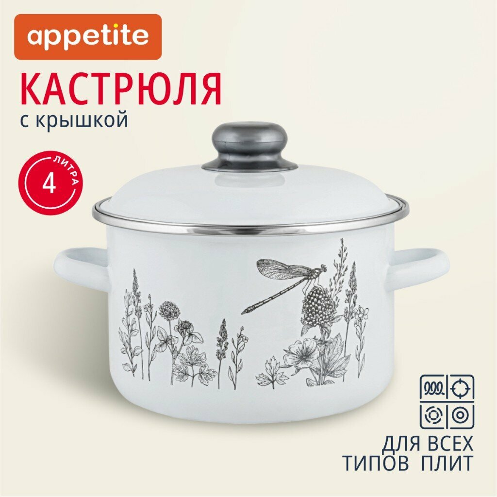 Кастрюля эмалированная Appetite FLORA-2, с крышкой, 4 л