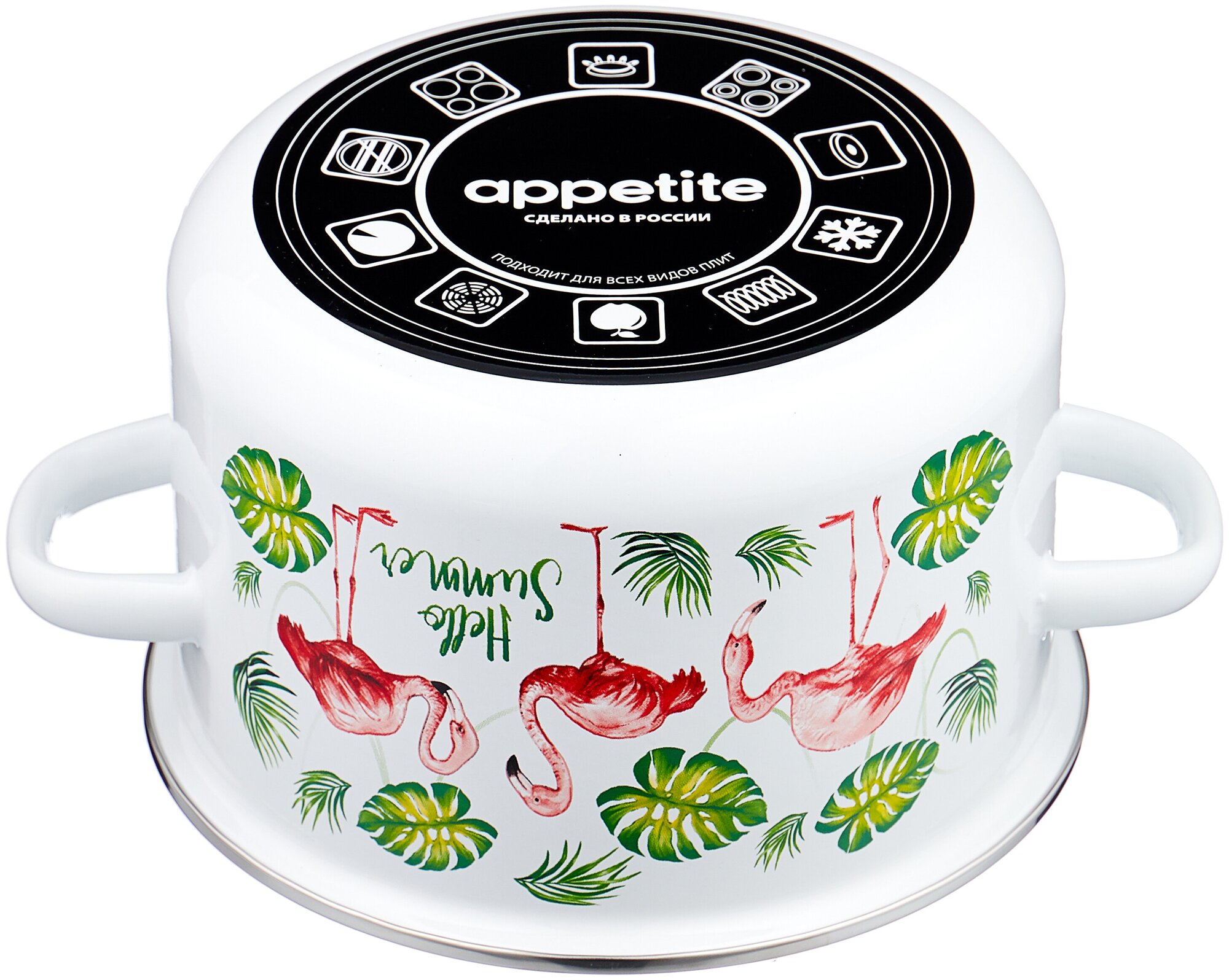 Лучшие цены. Представляем стальную эмалированную посуду ТМ Appetite серии Танец фламинго. Кастрюля производится из экологичного природного сырья и соответствует стандартам ГОСТ, что гарантирует отсутствие химических реакций и сохраняет вкус пищи при приготовлении. Стекловидное эмалированное покрытие надежно предохраняет металл основания от контакта с продуктами. Кастрюля отличается высоким качеством. Изделие подходит для всех видов плит: газовых, электрических и индукционных. Магазины в вашем городе.
