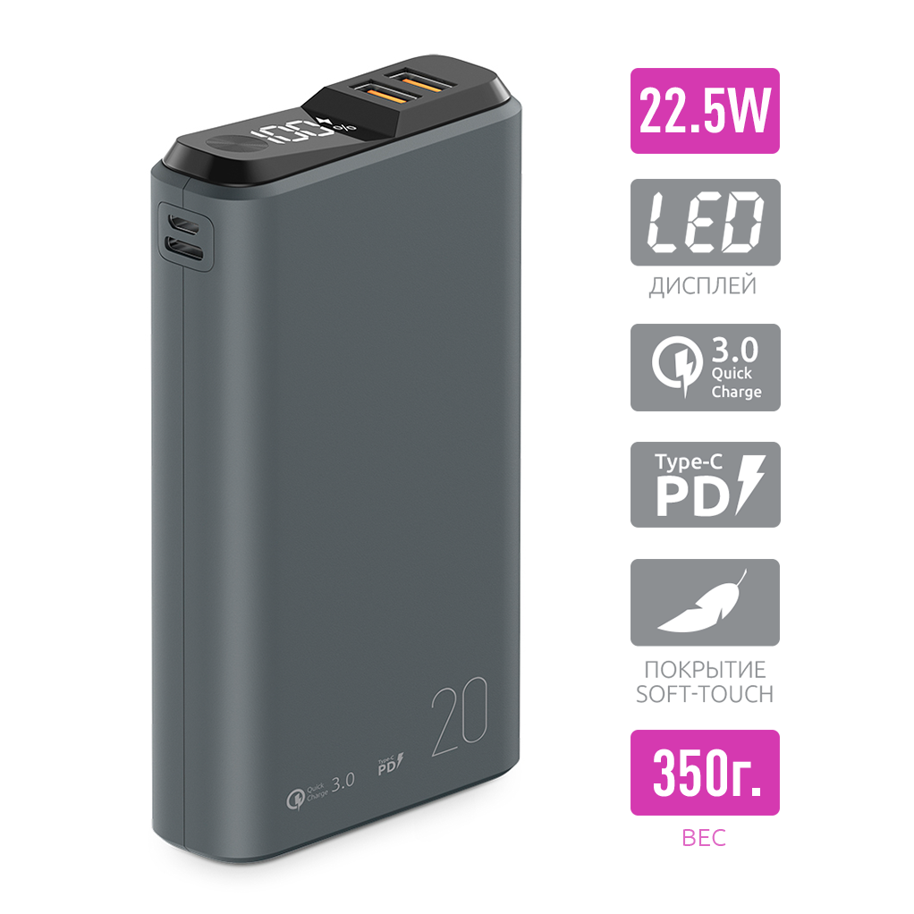 Портативное зарядное устройство Olmio QS-20 20000mAh, 22,5W, QC 3.0, темно-сер 3 097 ₽ Подробнее