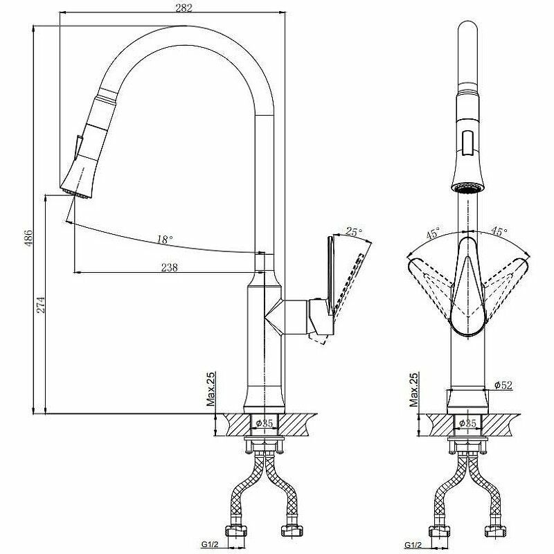 | Функции и возможности | поворотный излив / выдвижной излив |