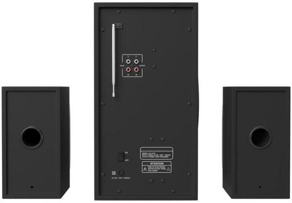 Лучшие цены. Акустический тип: 2.1 (две колонки + сабвуфер); Мощность: 50-99 Вт; Особенности: Беспроводной пульт ДУ, Bluetooth; Тип: Колонки; Выходная мощность: 90 Вт; Материал корпуса: MDF/пластик; Динамики: Размер широкополосного динамика (фронт), 76.2 мм, Количество ВЧ динамиков (фронт), 2, Размеры ВЧ динамика (фронт), 25.4 мм; Диапазон воспроизводимых частот: 40 Гц - 20 КГц; Соотношение сигнал/шум: 65 дБ; Разъёмы: для микрофона; Пульт ДУ: Есть; Дисплей, индикация: есть; Питание: от сети; Размеры: 120 х 220 х 120 мм. Магазины в вашем городе.