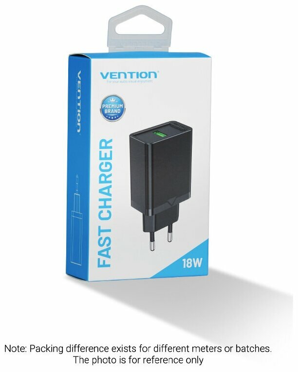 Зарядное устройство сетевое Vention Fabb0-eu USB2.0 QC 3.0 Черный