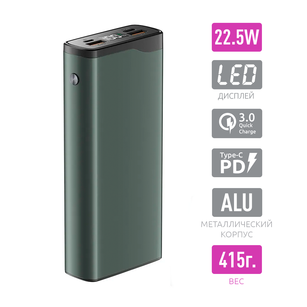 Внешний аккумулятор OLMIO QL-20, 20000mAh, 22.5W, PowerBank с поддержкой QuickCharge3.0 / PowerDelivery, LCD, зеленый 2 490 ₽ Подробнее