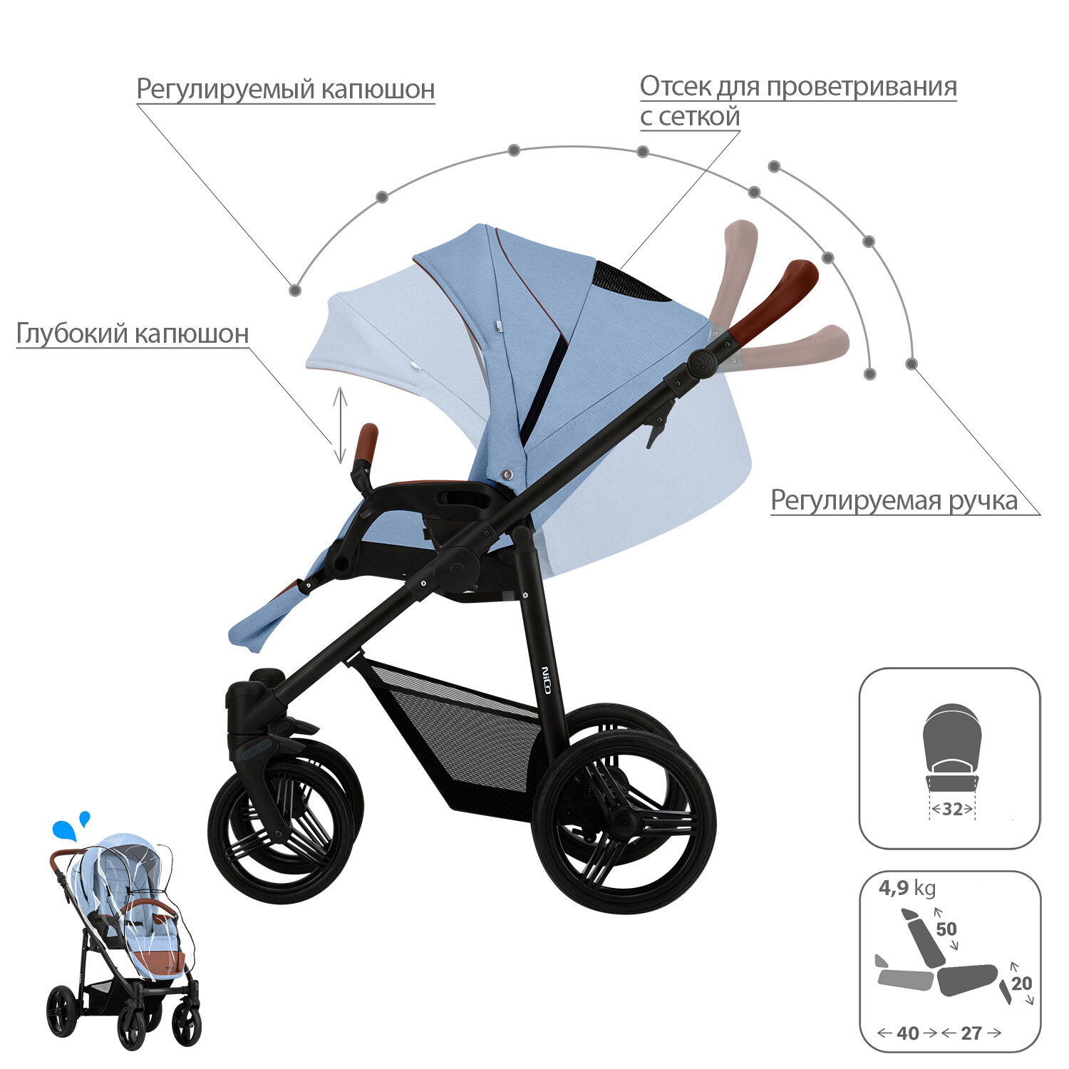 | Комплектация | прогулочный блок / люлька / накидка для ног / дождевик / сумка / рюкзак для вещей / отделение для покупок |