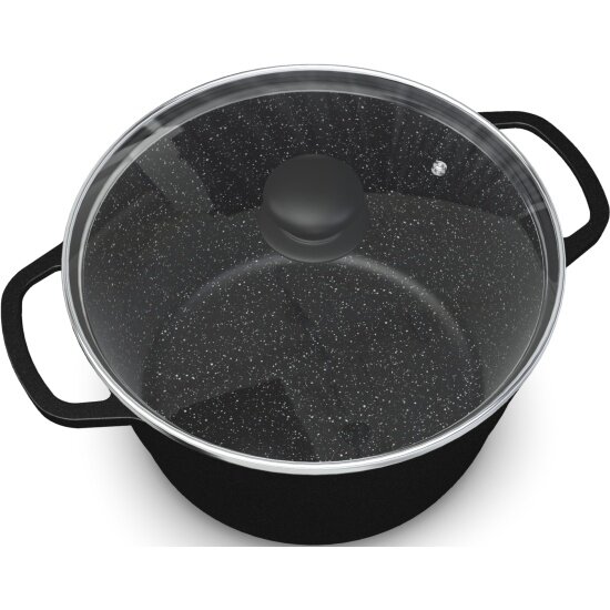 Кастрюля Кастрюля нева металл посуда НМП "Каменная" с крышкой, черный гранит, 6 л