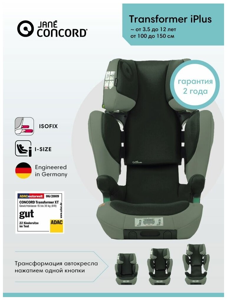 Лучшие цены. JANE Transformer ITech – то, что нужно для безопасной, комфортной и спокойной поездки куда угодно! Подходит для детей от 3.5 до 12 лет. Автокресло Transformer iTech соответствует последнему и самому требовательному европейскому стандарту: R129, известному как i-Size. Сиденье имеет эргономичную форму с комфортным поролоновым чехлом и мягкими подлокотниками. Мягкие чехлы на сиденьях способствуют комфортному и уютному размещению ребенка. Чехлы легко снимаются и их можно стирать. Магазины в вашем городе.