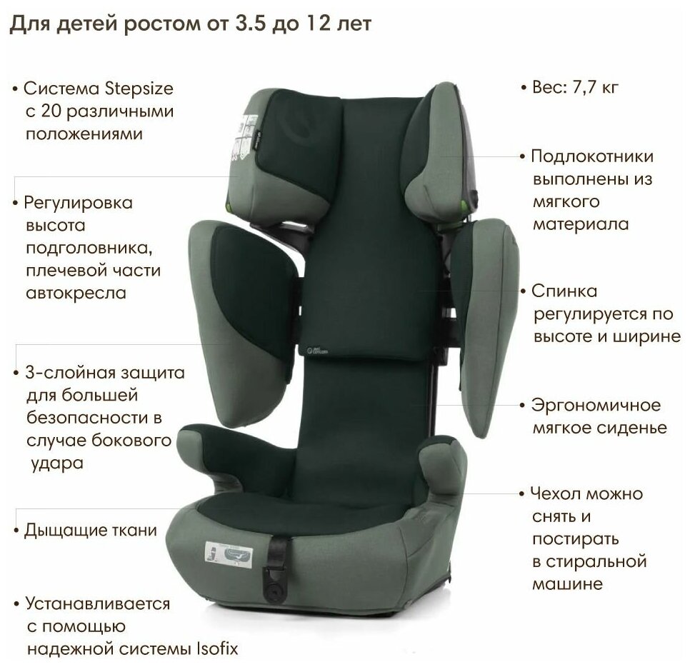 Детские автокресла Автокресло JANE Concord, Transformer ITech (100-150 см) гр.2/3 Dark grass