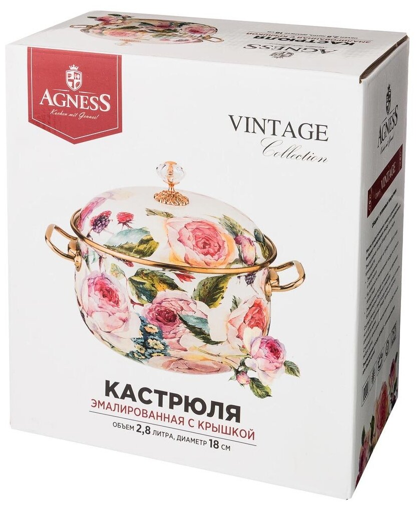 Кастрюля 950-082 эмалированная agness с крышкой, серия royal garden 2,8 л (индукция)