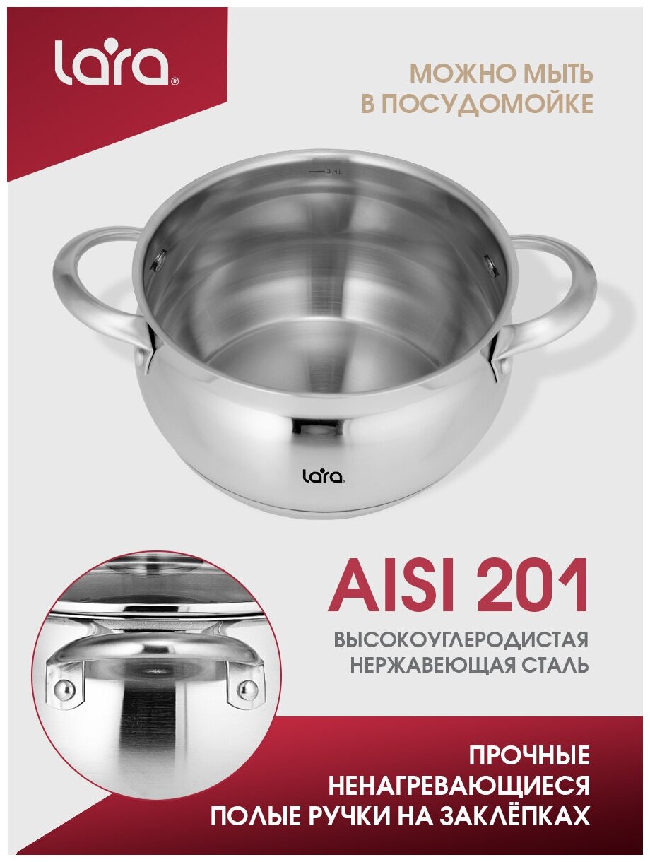 Набор посуды LARA LR02-100 Sonata, 2,1 л, 3,9 л, 6,5 л, из нержавеющей стали, для всех видов плит,
