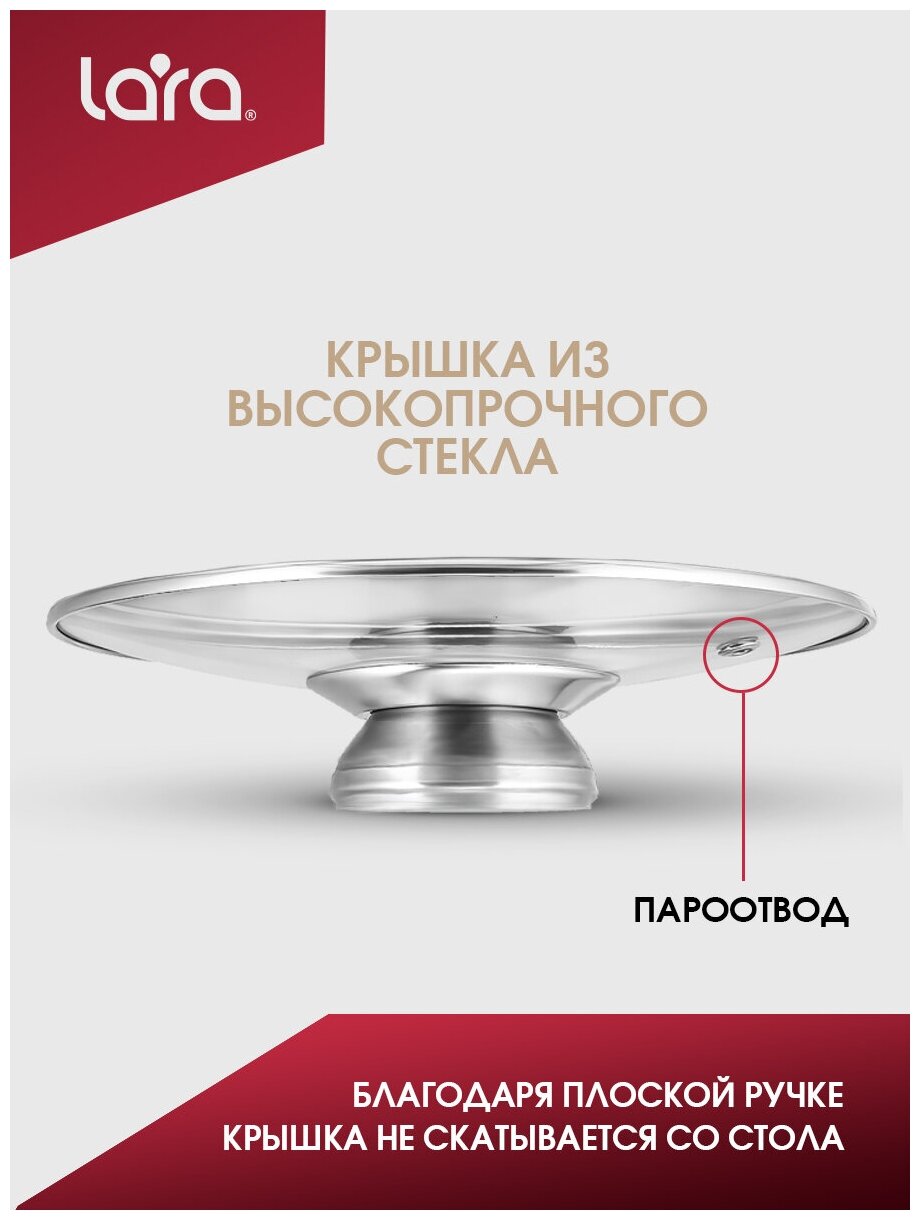 LARA Sonata LR02-100 кастрюли: 2.1/3.9/6.5л, стеклянные крышки