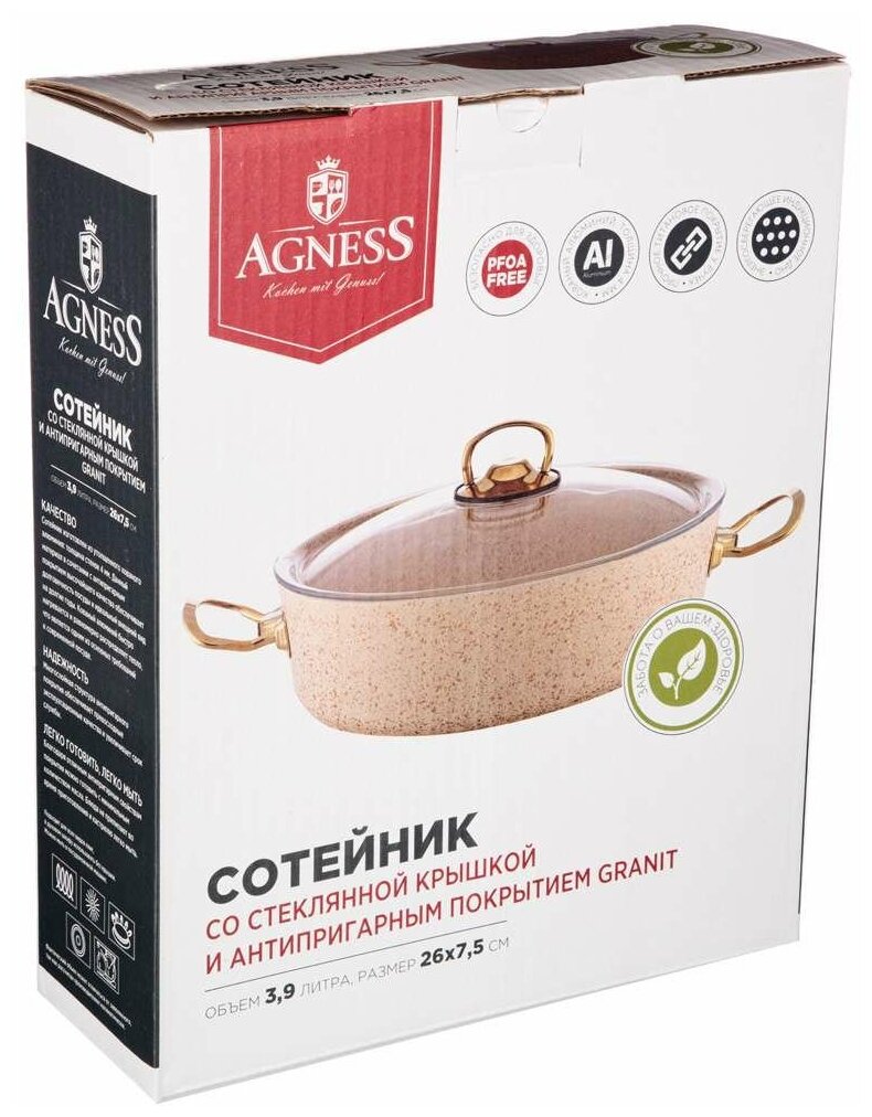 Сковородка Сотейник AGNESS премиум "RED QUEEN" 26X7,5 СМ,3,9 Л ИНД ДНО, трехслойное покр GRANIT, PFOA FREE