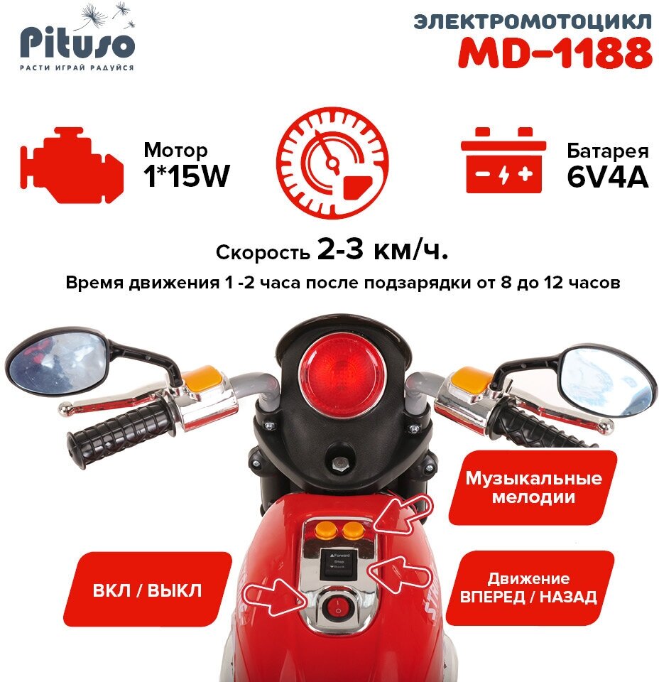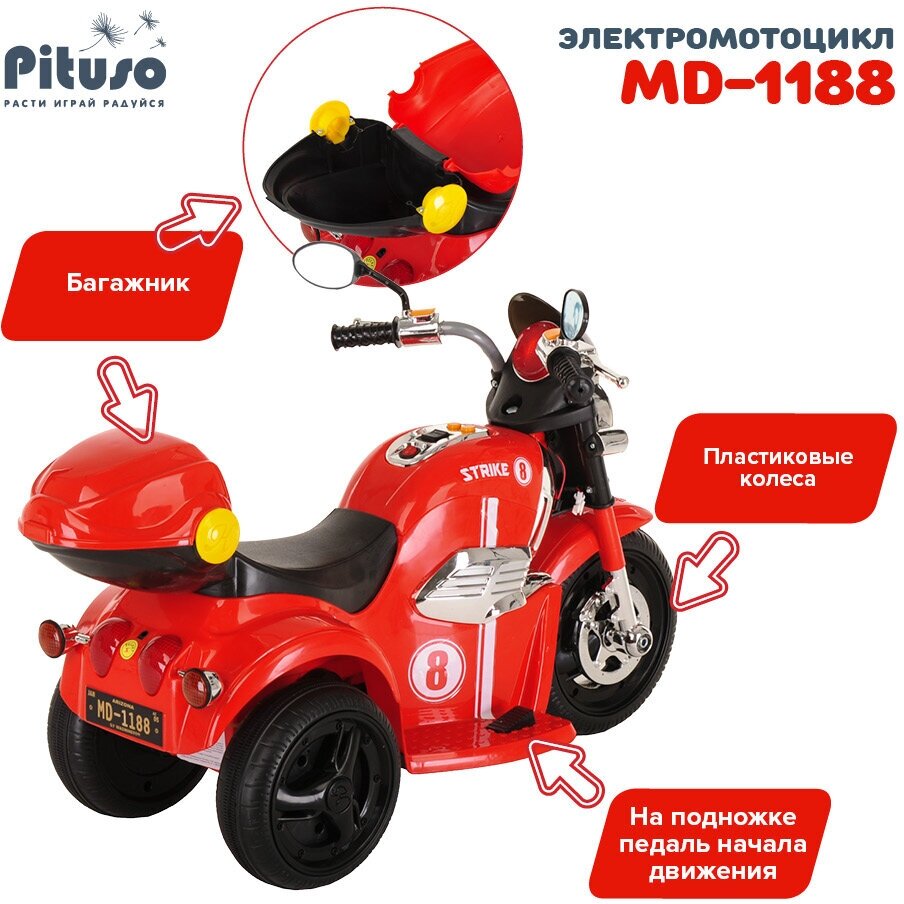 Детские электромобили Электро-мотоцикл Pituso 1188 красно-черный Детский электромотоцикл электро-трицикл электромобиль подарок для детей для мальчиков для девочек