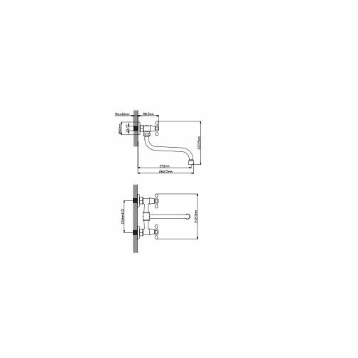 Эверест Смеситель для кухни настенный (Zn) трубчатый излив 280мм,двухвент,кран-буксы1/2,хром,B46-351 (арт. 810347)