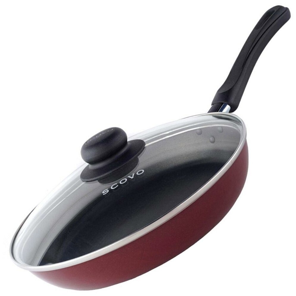 SCOVO EXPERT СЭ-029, Сковорода d: 260мм (стеклянная крышка, цвет: бордовый)
