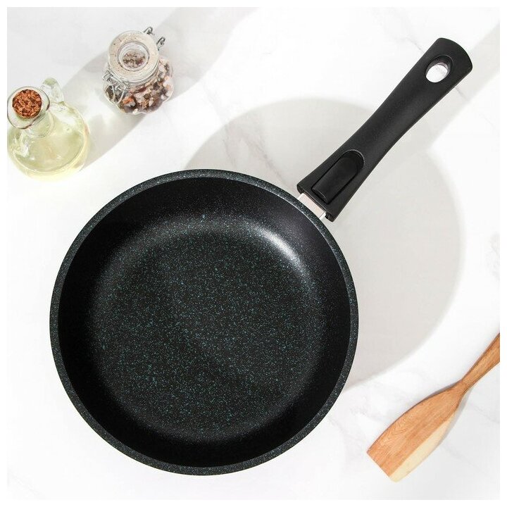 Лучшие цены. Сковорода Titanium pro, d 24 см, съёмная ручка, стеклянная крышка, антипригарное покрытие, цвет чёрный Titanium pro — литая толстостенная посуда с нанокомпозитным антипригарным покрытием Greblon С3+ (Германия), которое усилено частицами титана. Особенности посуды линии Titanium pro * Толстостенный корпус, отлитый вручную. * Нанокомпозитное антипригарное покрытие с частицами титана. * Предназначена для профессионального использования. Магазины в вашем городе.