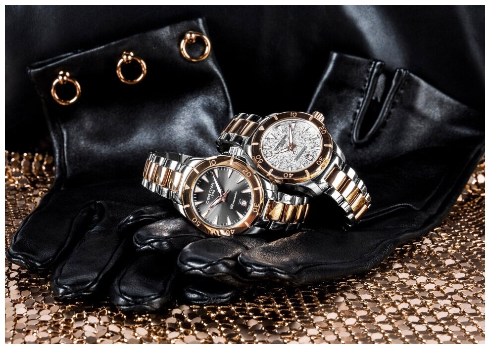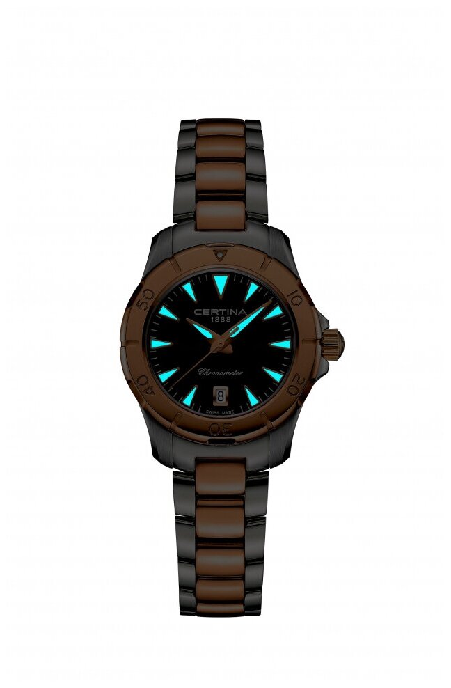 Лучшие цены. Certina DS Action Lady: Элегантность в компактном формате. Выдающиеся характеристики и элегантный дизайн в спортивном духе делают эти компактные часы надежным и стильным спутником каждого дня. Технические характеристики. Часовой механизм: Кварцевый часовой механизм ETA F04.412 PrecidriveTM Swiss Made, сертифицированный COSC. Часовая, минутная, секундная стрелки, указатель даты, индикатор окончания срока службы элемента питания. Магазины в вашем городе.