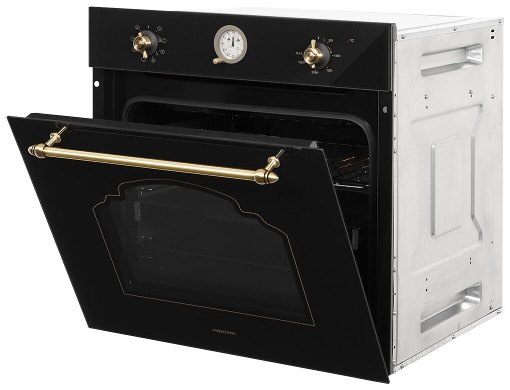 Духовой шкаф HIBERG VM 6382 BR электрический, 67 л, конвекция, гриль, ретро, черный