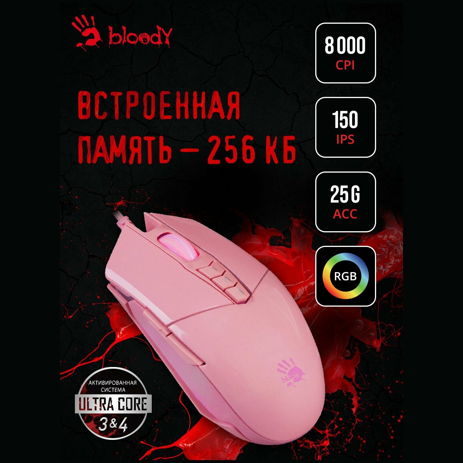 Мышь A4TECH A4 Bloody P91s оптическая USB (розовый) 2 140 ₽ Подробнее