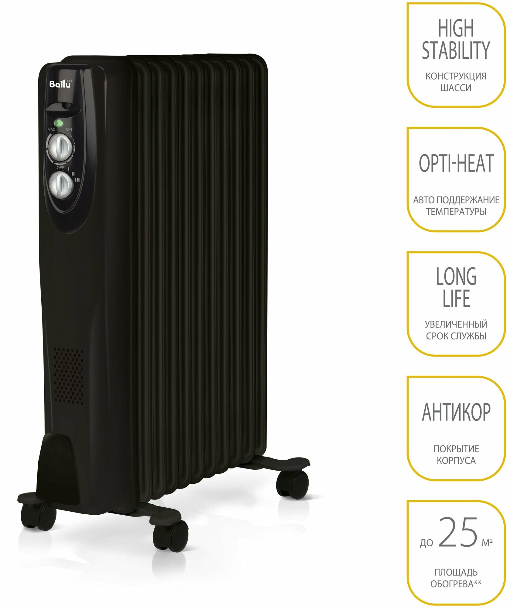 Баллу Радиатор масляный, 9 секций 2000Вт, ролики, 220В, IP20
