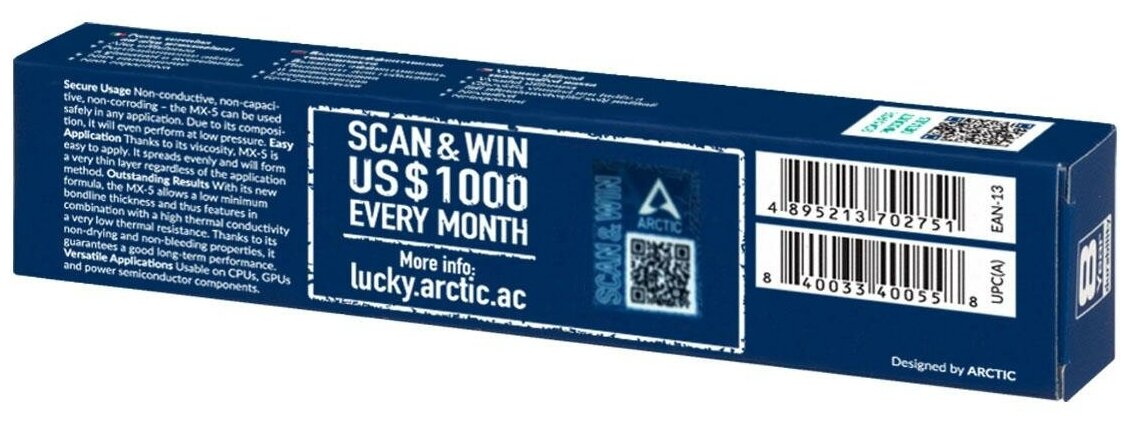 Лучшие цены. Поверхности процессорных чипов и систем охлаждения покрыты микроскопическими вмятинами; термопаста Arctic MX-5 состоит из микрочастиц углерода, которые заполняют эти полости. Это приводит к чрезвычайно высокой теплопроводности, гарантируя быстрое и эффективное рассеивание тепла от центрального процессора или графического процессора. Благодаря своей выдающейся производительности Arctic MX-5 является отличным выбором не только для оверклокеров и энтузиастов, но и для других применений, требующих теплопередачи. Магазины в вашем городе.