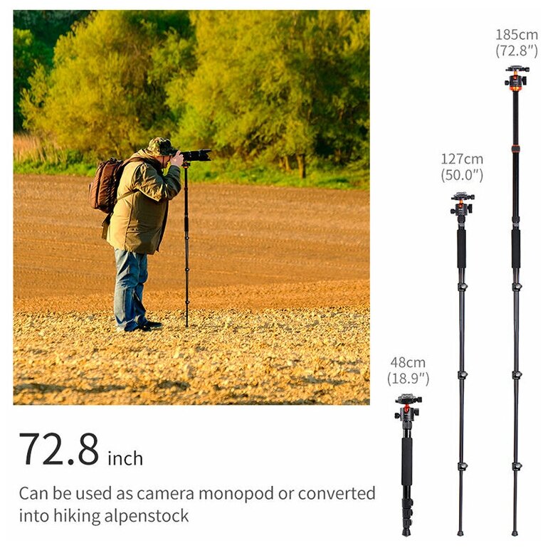Лучшие цены. Многофункциональный штатив с шаровой головой и быстросъемной пластиной типа Arca. Минимальная высота составляет 55.8 см, а максимальная 175 см. Грузоподъемность составляет 10 кг Четырехсекционный штатив легко складывается и раскладывается. Благодаря продуманной конструкции есть возможность установить центральную колонну наоборот для съёмки с низкого ракурса Центральную колонную можно объединить с одной из ножек, в результате чего вы получите напольный монопод с максимальной высотой до 185см Бренд, CoMica. Магазины в вашем городе.