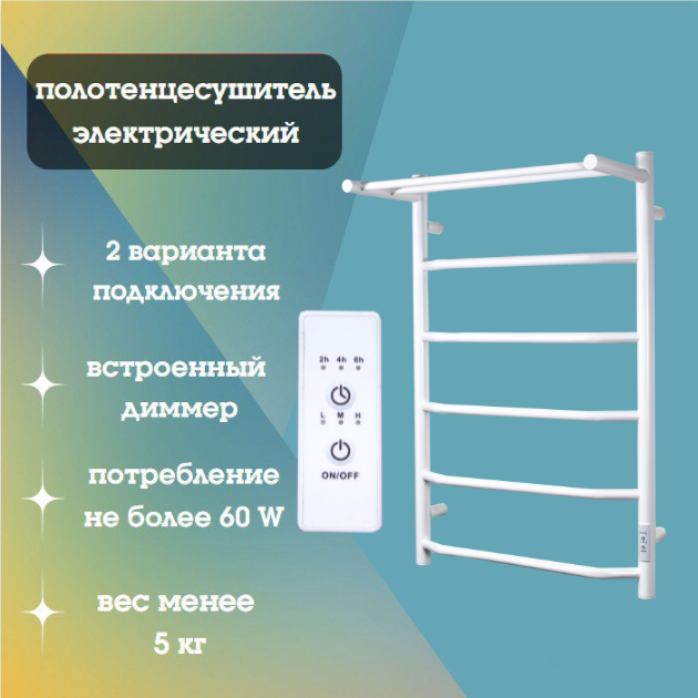 Полотенцесушитель электрический белый ПЭК сп 6 ВГП 80 на 50 с полкой, таймер, скрытое универсальное подключение