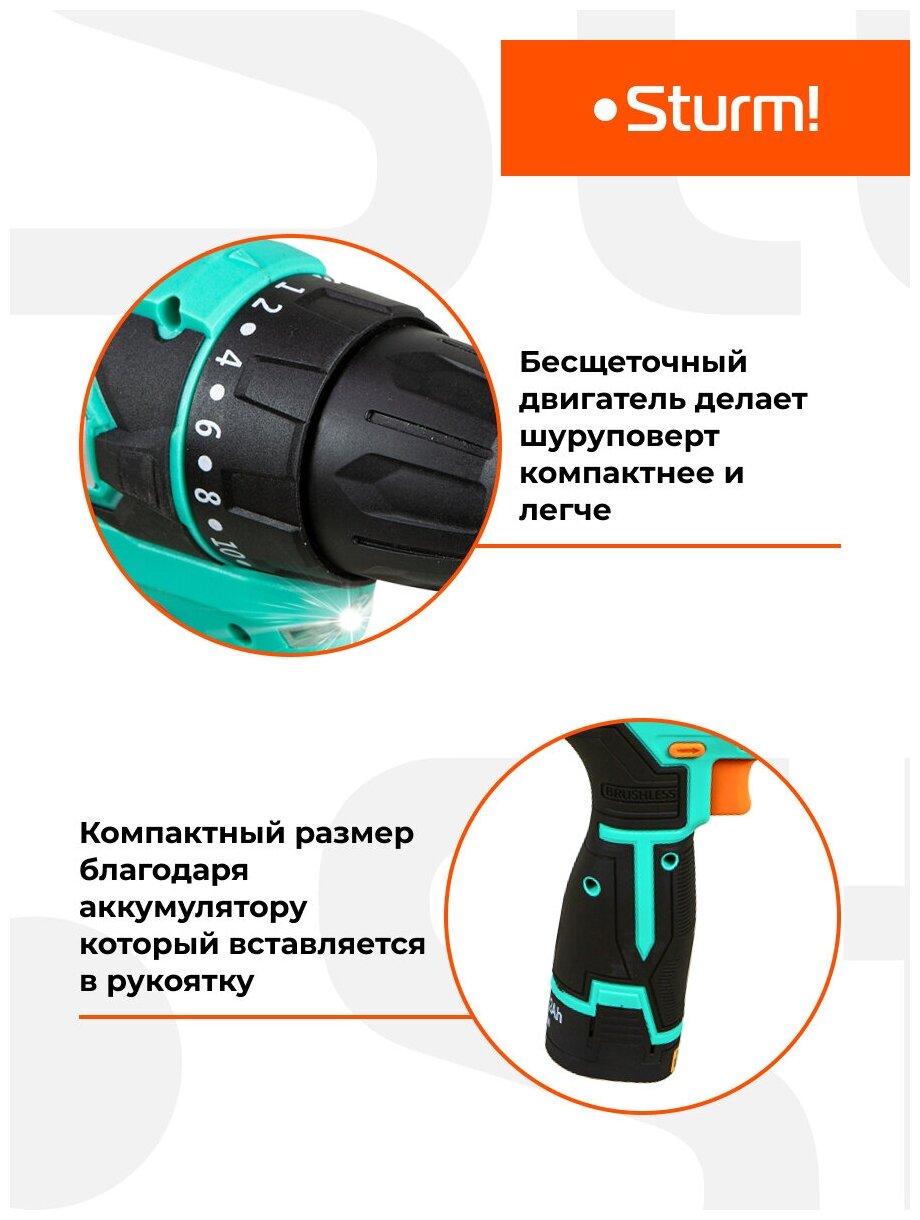 Аккумуляторный шуруповерт Sturm CD3514BL compact
