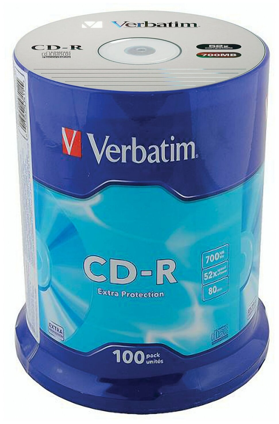 Компакт диск Verbatim CD-R, скорость записи 52x, Extra Protection, 700 мб, 100 шт (43411)
