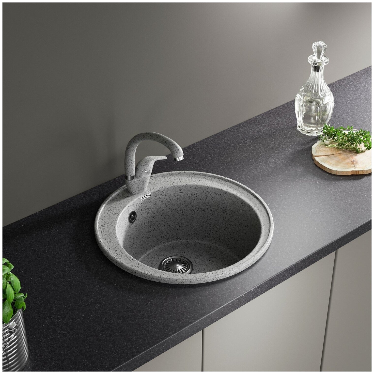 Кухонная мойка ZOX ZX-GM 1, искусственный камень, 48см х 48см, серый [544275]
