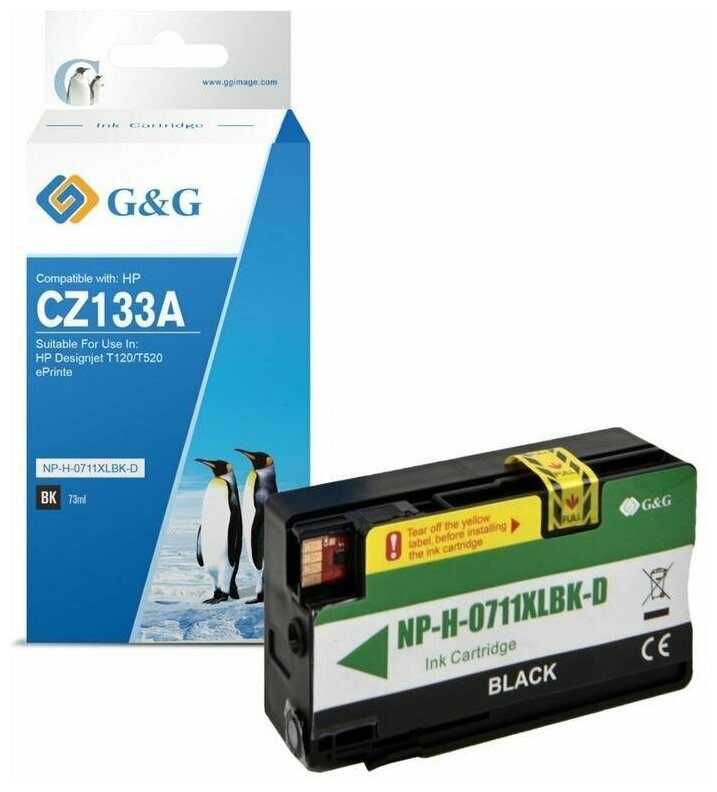 Картридж G&G струйный черный (73мл) для HP DJ T120/T520 GG-CZ133A