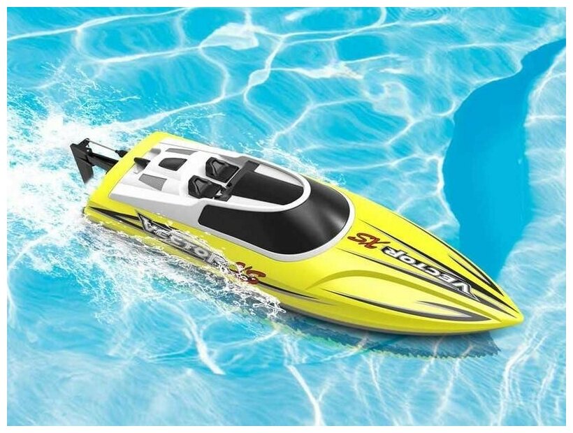 Лучшие цены. Радиоуправляемый катер VolantexRC Vector XS RTR 2.4GHz Радиоуправляемый катер VolantexRC Vector XS может поместиться на ладони, но сверхбыстрая скорость и функция самовосстановления делают его действительно интересным катером для скоростного заплыва. Функция восстановления при опрокидывании позволяет автоматически быстро перевернуть катер с пульта дистанционного управления и вернуться к гонке). Магазины в вашем городе.