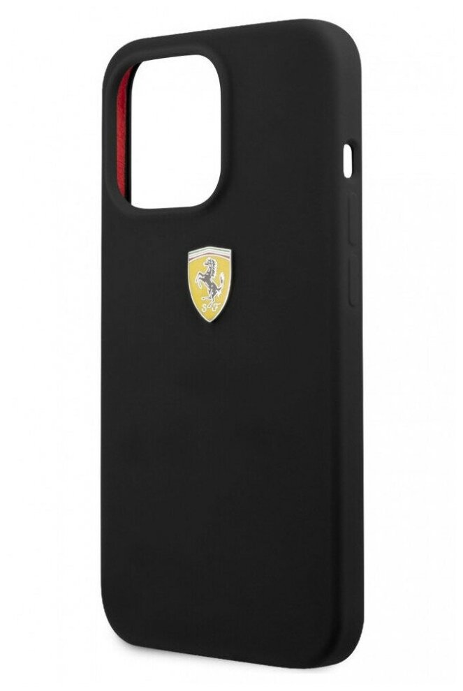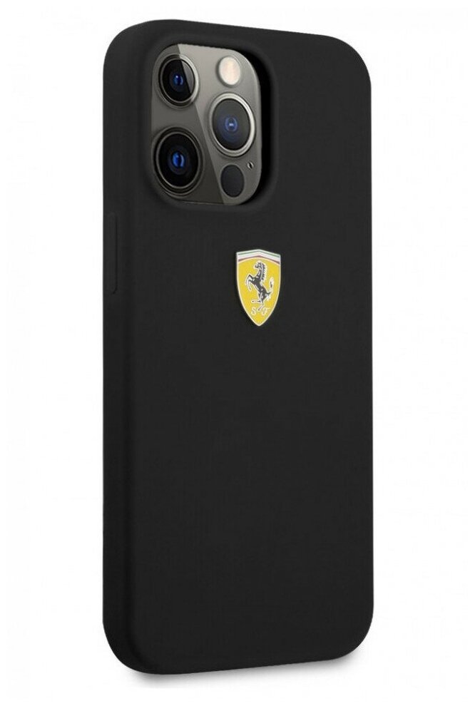 Чехлы для мобильных телефонов Чехол Ferrari LIQUID SILICONE CASE METAL LOGO для iPhone 13 ProMax, черный