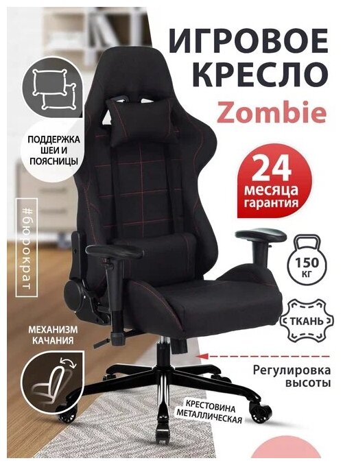 Компьютерные кресла Кресло игровое ZOMBIE 771N, на колесиках, ткань, черный [771n/black-bl]