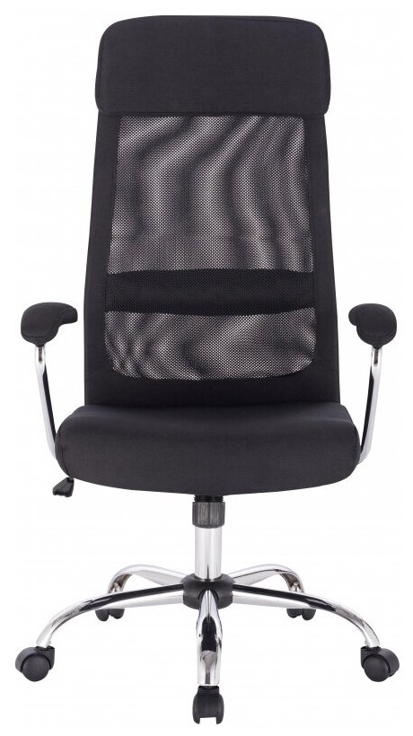 Кресло компьютерное Easy Chair для руководителя, черное, с подлокотниками, ткань, сетка, крестовина из металла